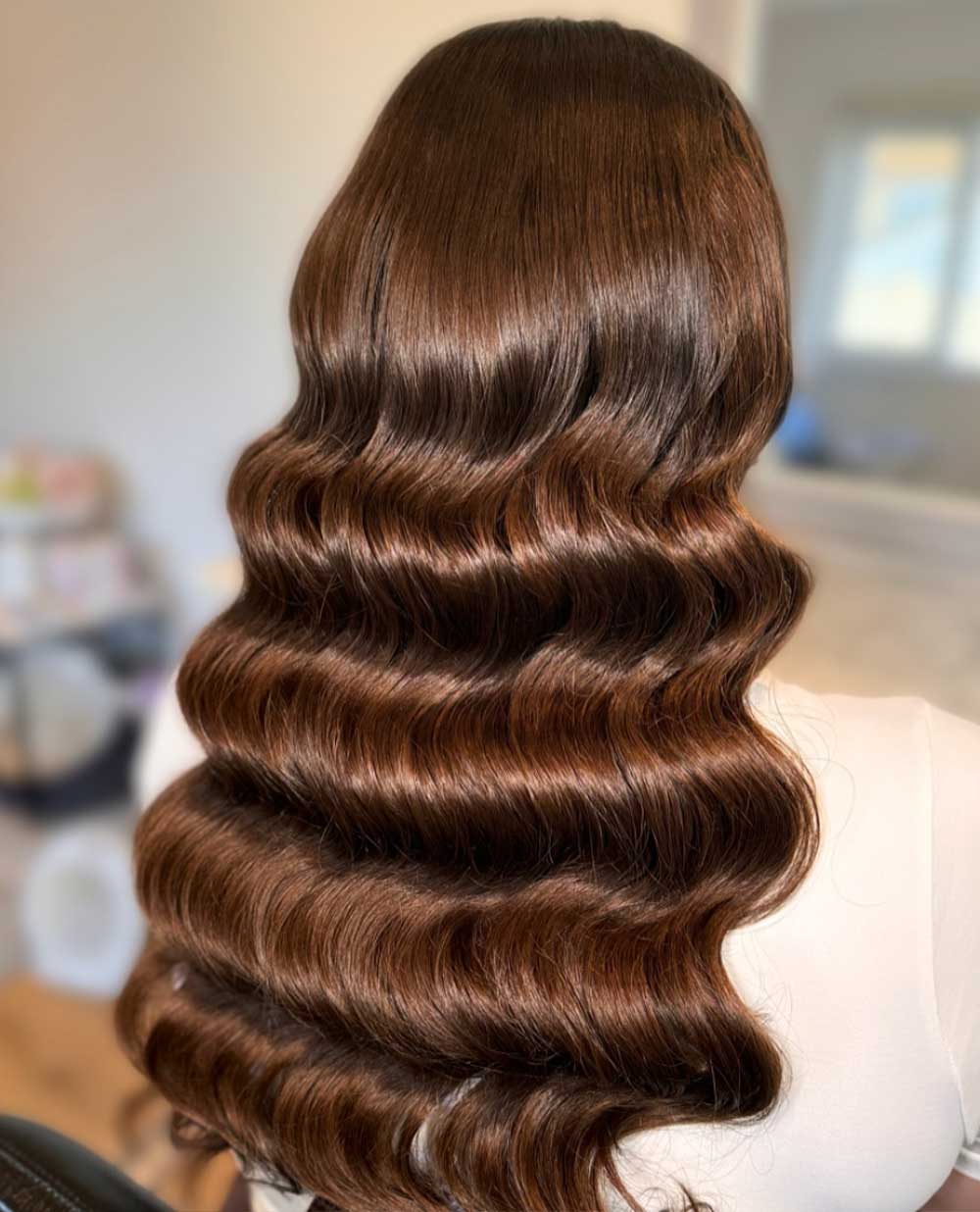 Le onde Hollywood sono perfette per matrimoni serali, formali o dal mood glamour. Lucide, strutturate e scenografiche, regalano un’allure sofisticata che si abbina benissimo ad abiti importanti o dalle linee pulite. Danno il meglio su capelli medio lunghi e lunghi, preferibilmente con riga laterale, e funzionano al meglio quando il resto del look resta essenziale, senza eccessi di accessori o styling troppo carichi.