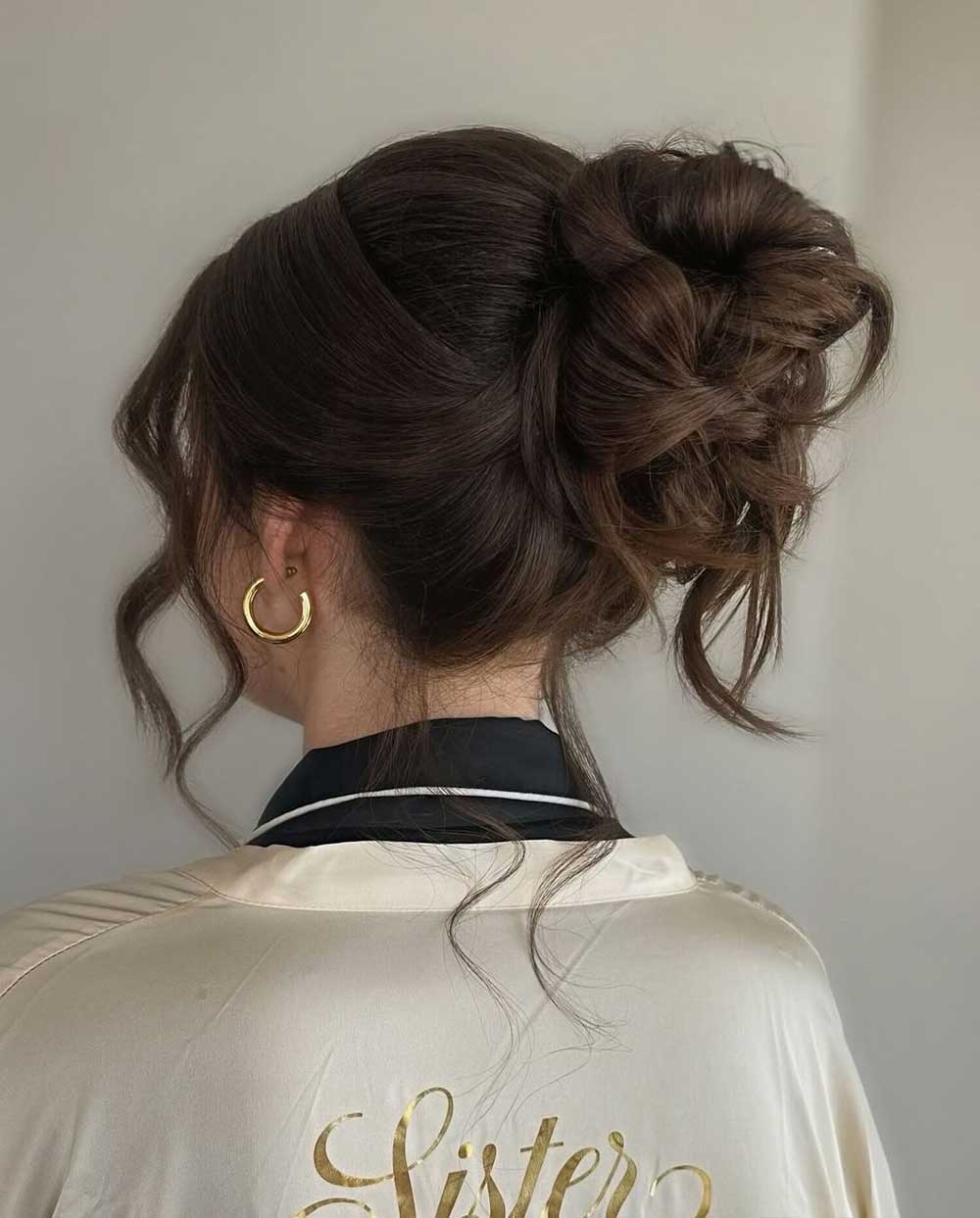 Chi preferisce un risultato meno rigoroso può puntare sui raccolti morbidi e destrutturati, con volumi leggeri e qualche ciocca lasciata libera sul viso. Sono ideali anche per chi ha un caschetto lungo o capelli alle spalle, perché alleggeriscono l’effetto finale e rendono il look più naturale, perfetto per matrimoni all’aperto o dallo stile romantico.