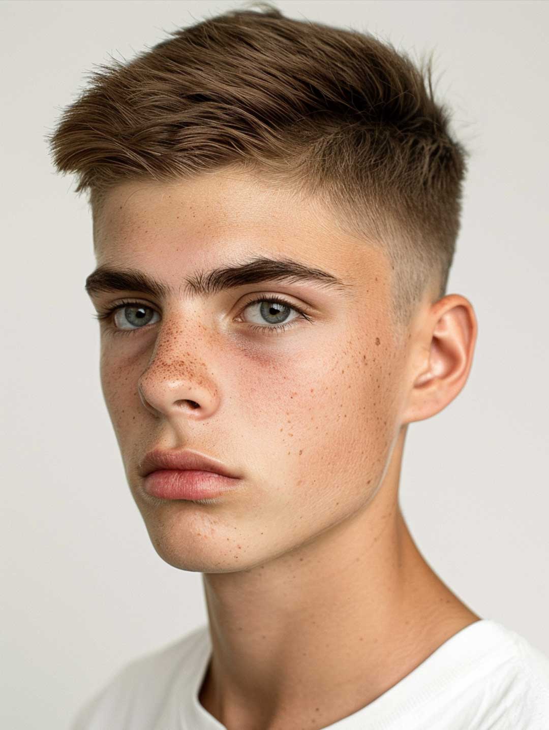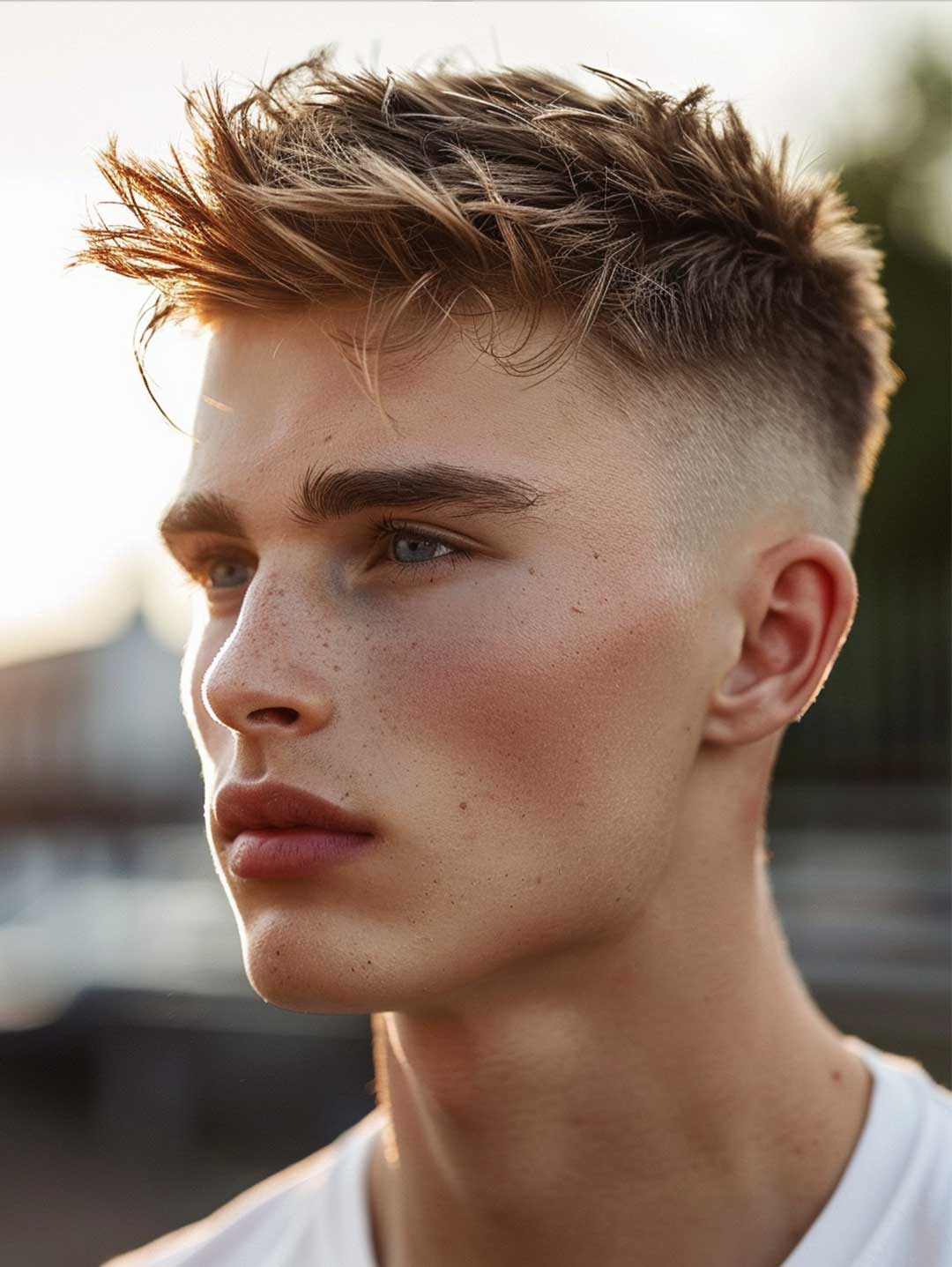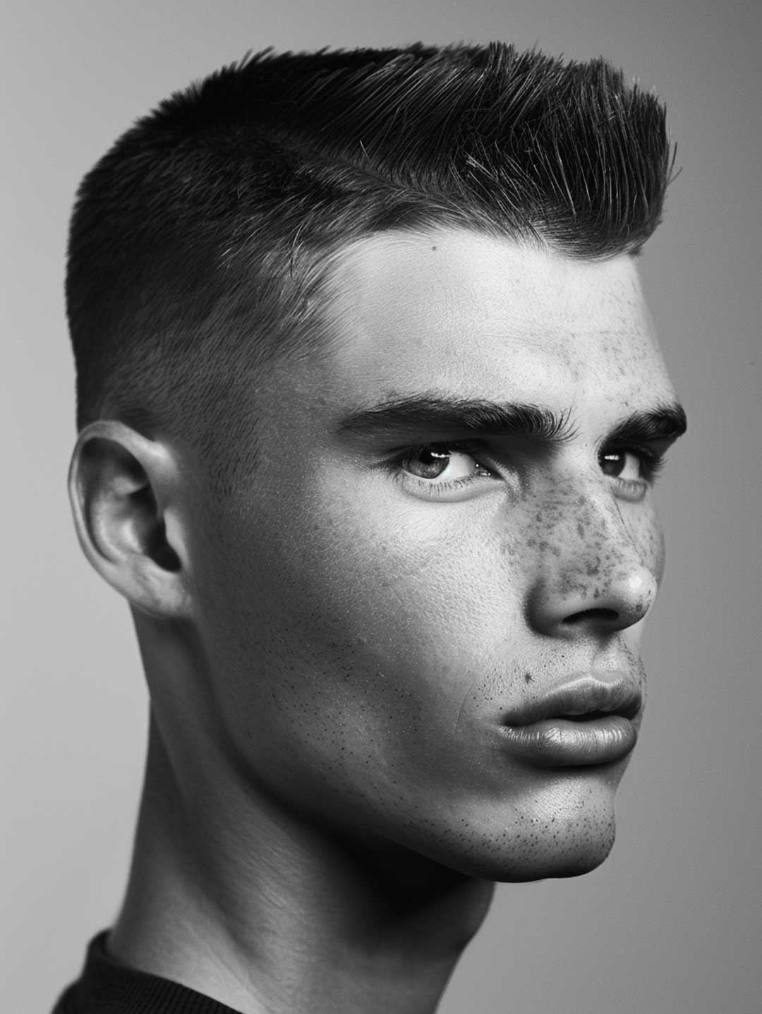 Su un viso più morbido, il taglio spazzola uomo funziona come un piccolo trucco visivo: la parte superiore leggermente più sollevata aggiunge slancio, rendendo l’insieme più armonioso e meno pieno. È la ragione per cui tanti atleti e modelli lo preferiscono, soprattutto nei periodi in cui cercano un’immagine più definita.