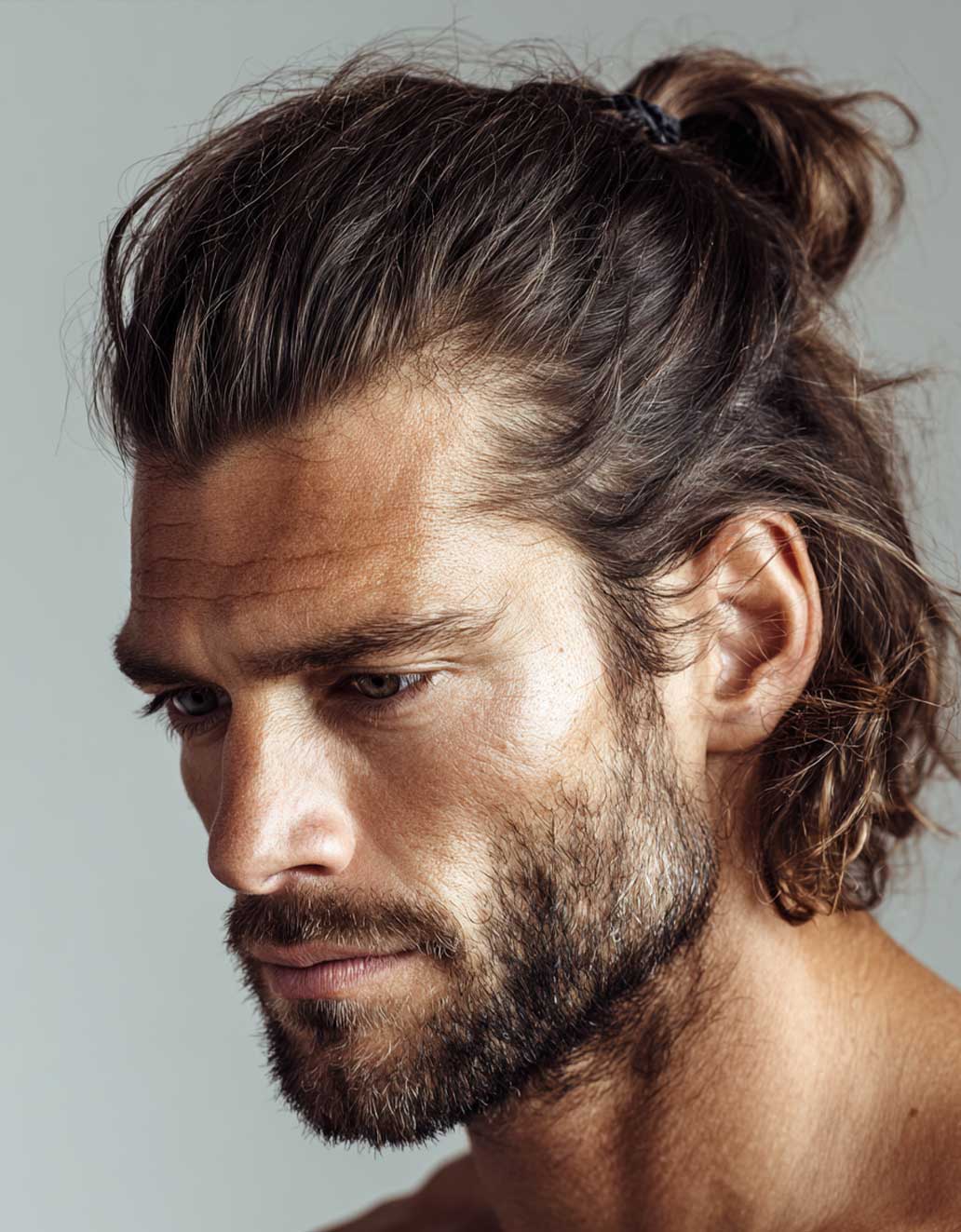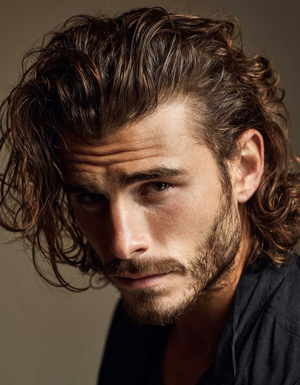 Questo tipo di styling funziona meglio su capelli spessi o mossi, perché offre volume e tenuta naturale, inoltre i capelli uomo all’indietro lunghi sono perfetti se vuoi mantenere lunghezze importanti ma con un aspetto curato. Richiede una routine costante con shampoo delicato, maschera idratante e prodotti anti-crespo per preservare la lucentezza e la definizione.