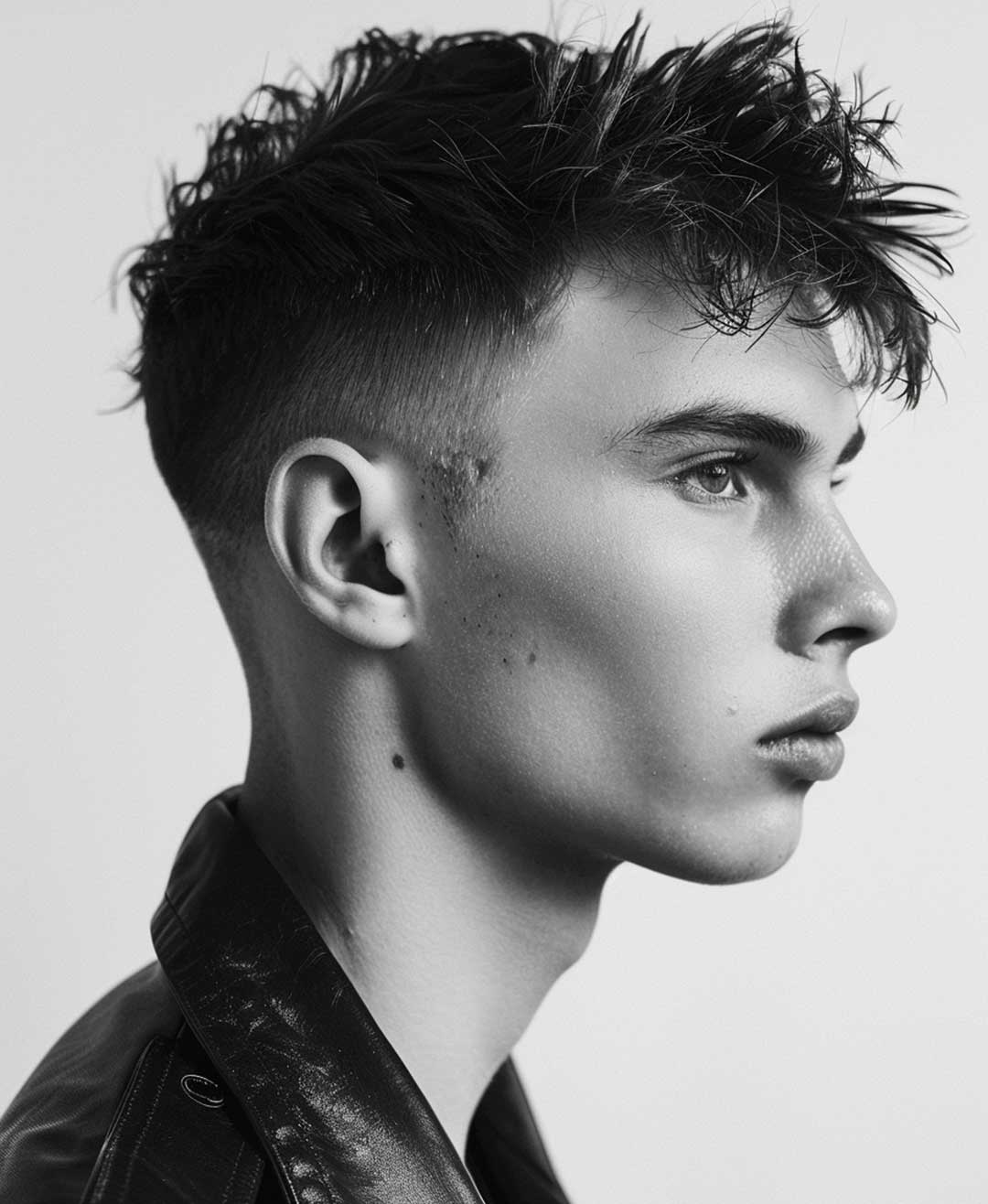 L’undercut è il classico doppio taglio, costruito su un contrasto netto tra lati e nuca molto corti e una parte superiore più lunga e piena. È proprio questa separazione evidente a renderlo uno dei tagli di capelli corti uomo più riconoscibili, capaci di trasformare anche una base semplice in un look di forte impatto visivo. Oggi l’undercut si evolve in versioni più equilibrate e portabili: lo stacco resta visibile, ma meno rigido, mentre la parte superiore viene lavorata per risultare più naturale e adattabile allo styling quotidiano. Questo contrasto crea un look facilmente personalizzabile: la lunghezza superiore può essere acconciata in vari modi, da liscia e pettinata all’indietro a ondulata o arruffata, dando così la possibilità di una grande versatilità e il risultato è un taglio deciso, moderno, che mantiene carattere senza apparire eccessivo.