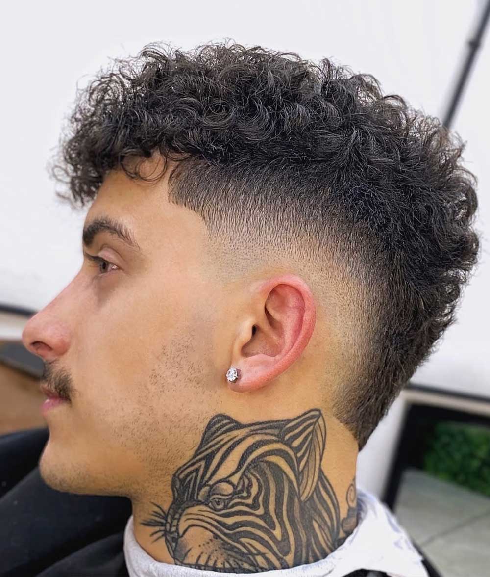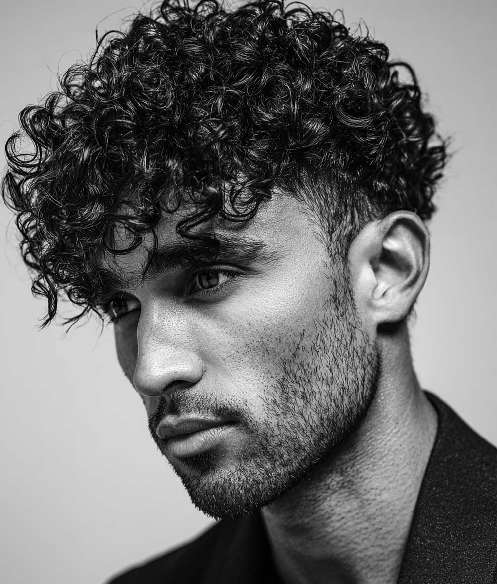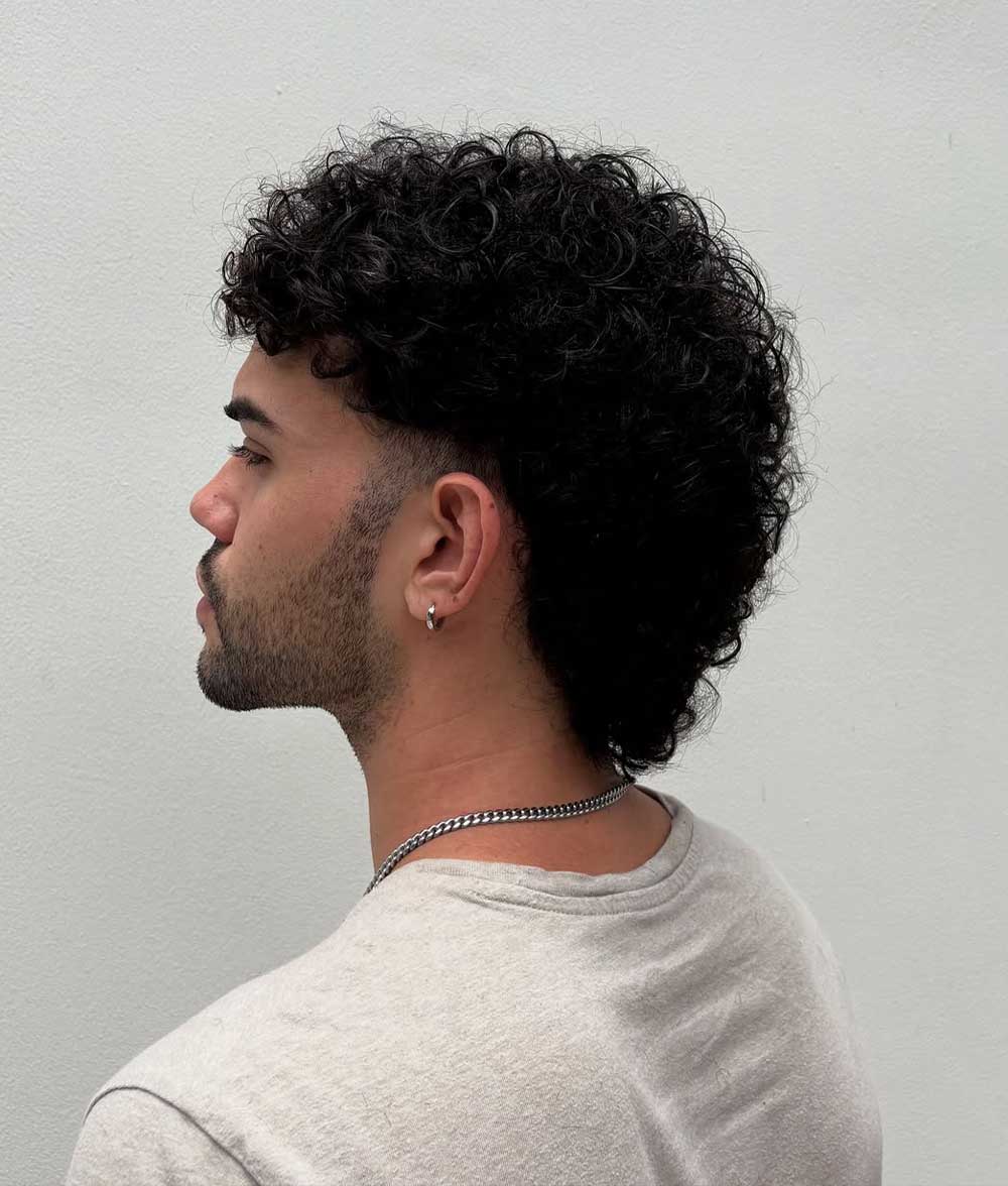 La cresta con i capelli ricci è meno impegnativa di quanto sembri, non diventa mai rigida o troppo costruita, anzi: il volume naturale rende il taglio più morbido e facile da portare, lontana dall’idea rigida e impostata che spesso si associa a questo genere di taglio. I ricci restano un po’ più lunghi al centro della testa, mentre ai lati si accorciano leggermente. Questo aiuta a dare forma al taglio senza togliere movimento, e soprattutto senza l’effetto capelli incollati o forzati. È una buona scelta se si vuole cambiare look dargli un po’ di carattere, mantenendo comunque un aspetto ordinato.