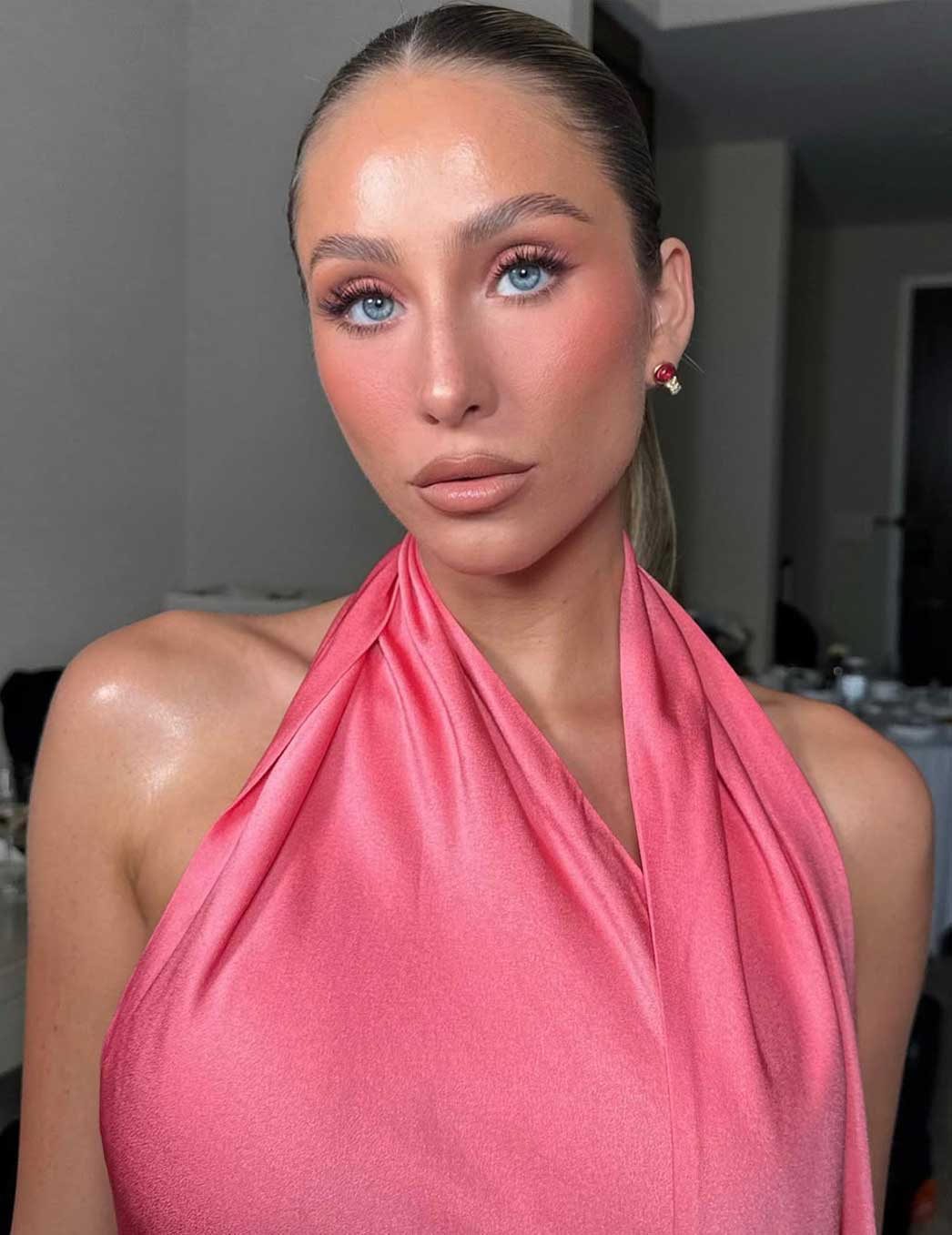 Sugli occhi si resta su tonalità neutre e calde, come beige, champagne, rosa cipria o pesca chiaro. Un ombretto satinato o leggermente luminoso, sfumato senza stacchi netti, apre lo sguardo senza appesantirlo. L’eyeliner non è indispensabile, se serve definizione basta una matita marrone sfumata tra le ciglia. Mascara sì, ma senza esagerare: l’effetto deve essere pulito, non drammatico. Guance delicate, con un blush rosato o pescato applicato con mano leggera, e labbra naturali ma curate. Via libera a rossetti nude, rosati o leggermente glossati, purché non appiccicosi. Questo look funziona di giorno, a cena, ma anche per chi non ama vedersi troppo truccata e vuole semplicemente una versione più fresca e luminosa di sé. È il classico trucco che non stanca, non segna e soprattutto non tradisce a metà serata.