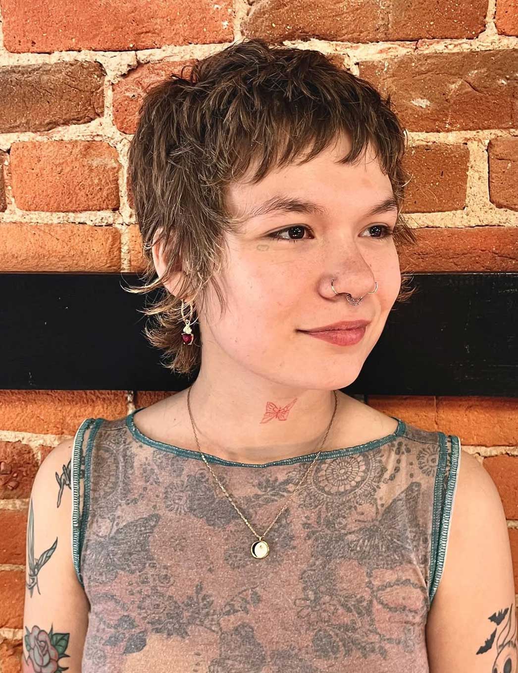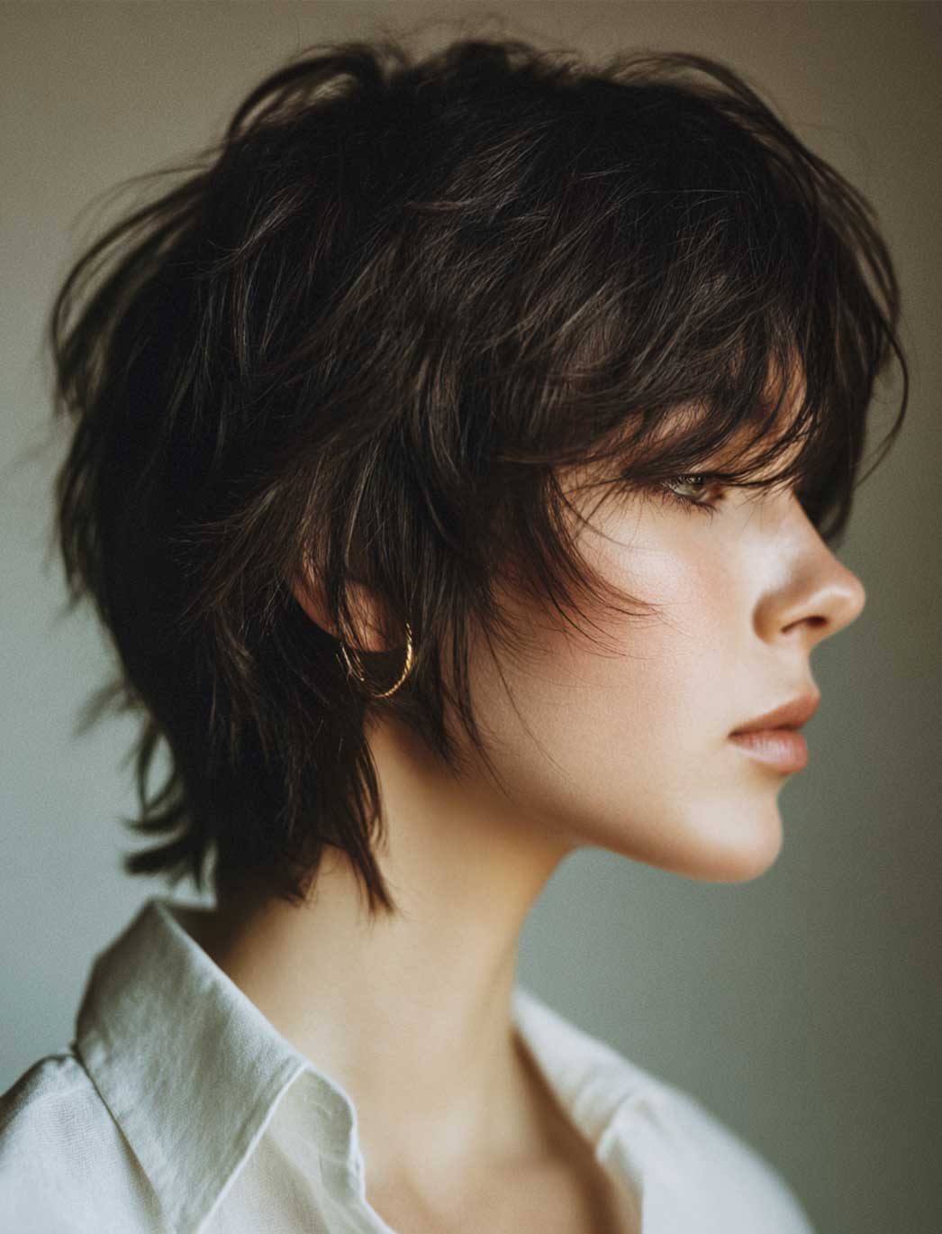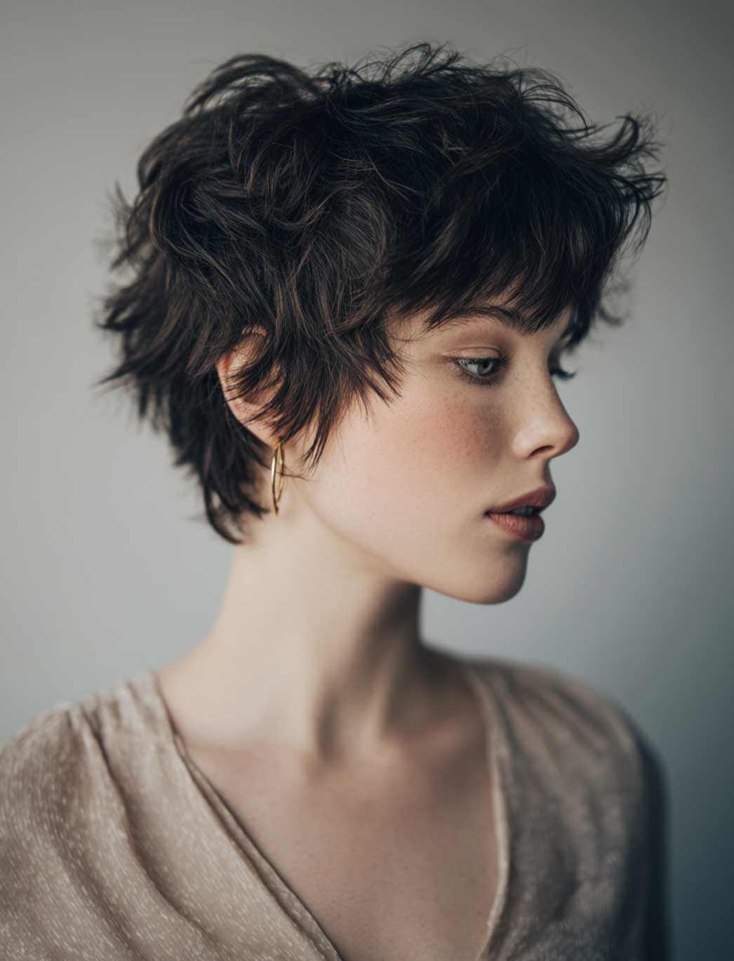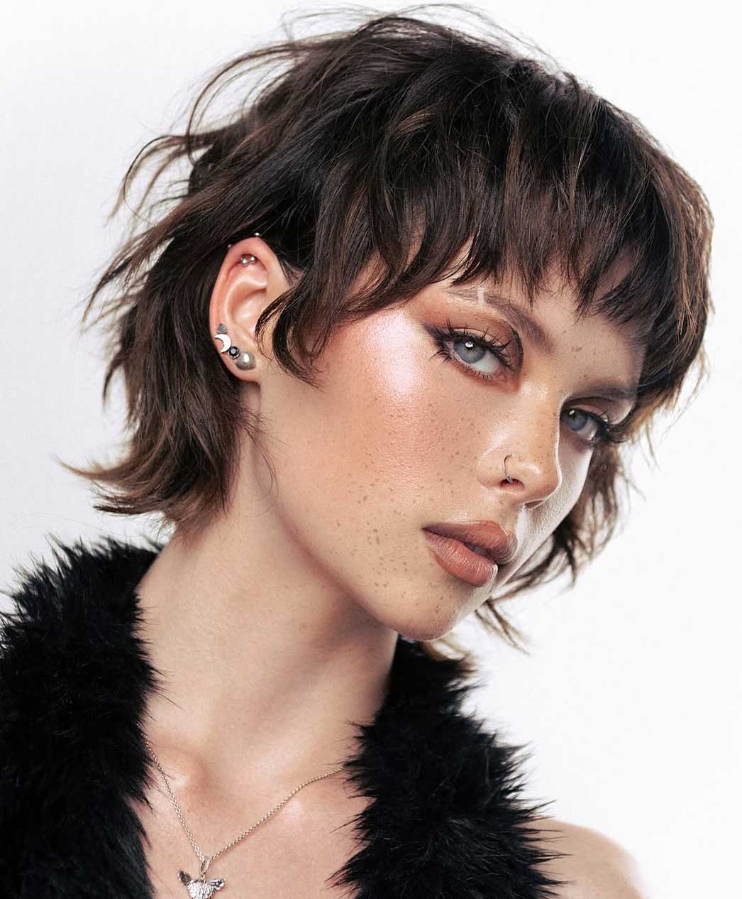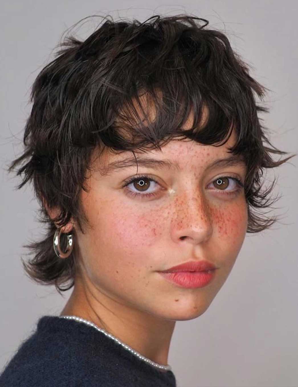 Se ami il movimento e i capelli pieni di vita, lo shag corto è una garanzia. Scalature evidenti, volumi ben distribuiti e frangia sfilata: tutto lavora per dare corpo e leggerezza allo stesso tempo. È uno dei tagli corti donna spettinati più riusciti quando vuoi evitare l’effetto piatto e dà il meglio su capelli mossi o ricci, dove l’effetto spettinato viene quasi da sé.