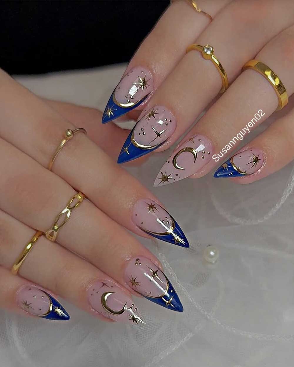 Il bello delle unghie blu notte è che non conoscono regole rigide: possono essere eleganti e discrete con un finish semplice, oppure trasformarsi in vere protagoniste con nail art creative e dettagli luminosi. Dagli effetti cromati alle marble nails, fino alle versioni a pois o negative space, ogni stile racconta qualcosa di diverso e permette di giocare e sperimentare con gli ultimi trend e ovviamente con le proprie preferenze!
