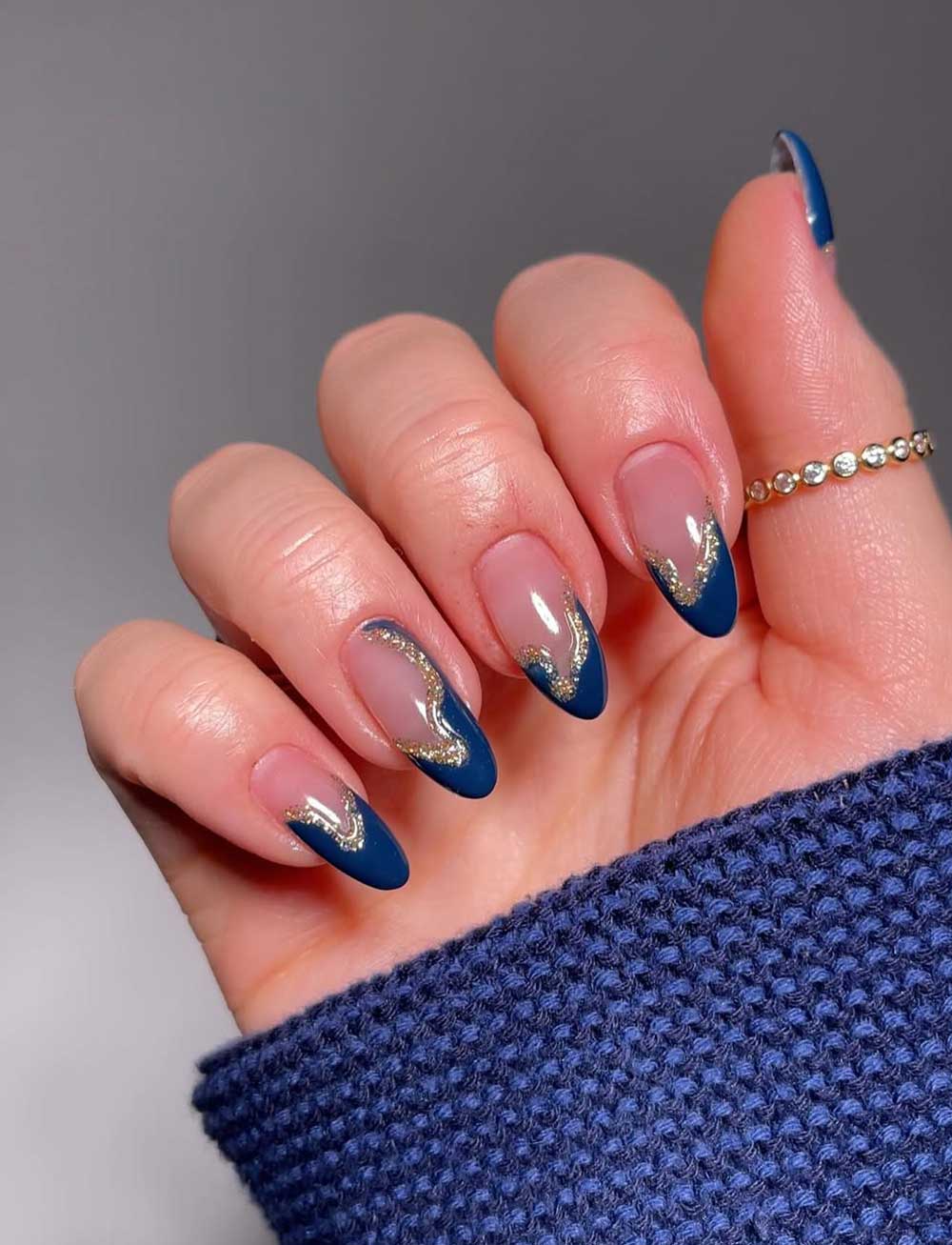 Il blu navy sta benissimo da solo, ma con qualche dettaglio metallico diventa davvero speciale, basta aggiungere una linea dorata, un tocco argentato o piccoli accenti cromati per dare subito luce e rendere la manicure più preziosa.