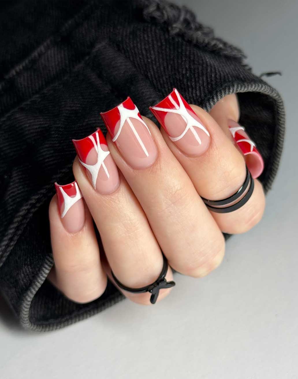 Ideali per chi ama una manicure curata e senza eccessi. Il french bicolor, con punta rossa e base bianco latte, resta una scelta intramontabile, ma si può osare anche con linee diagonali sottili, micro dettagli metallici o tocchi glossy. Le versioni con finish opaco o semi-matte aggiungono quel tocco moderno e sofisticato, perfetto per l’autunno e l’inverno.