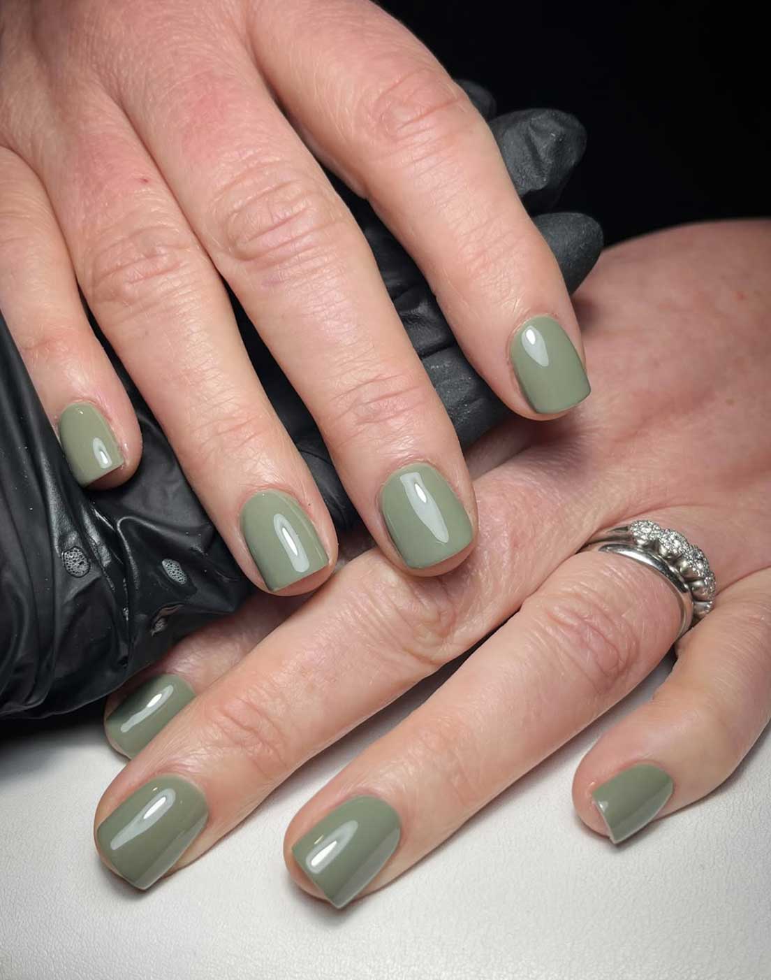 Un verde delicato, polveroso, con una punta grigia che lo rende estremamente raffinato. È una tonalità equilibrata, mai invadente, perfetta per chi vuole uscire dai soliti nude restando comunque nel territorio delle unghie semplici e portabili. Sta benissimo con outfit chiari, beige, denim e palette naturali, e dà il meglio su unghie corte o medio-corte dalla forma morbida. Con finish cremoso e lucido risulta elegante e contemporaneo, senza risultare eccessivo