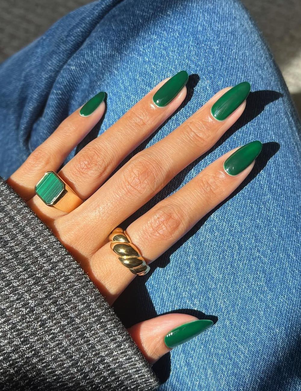 - manicure smeraldo lucida su forma mandorla, elegante e senza tempo