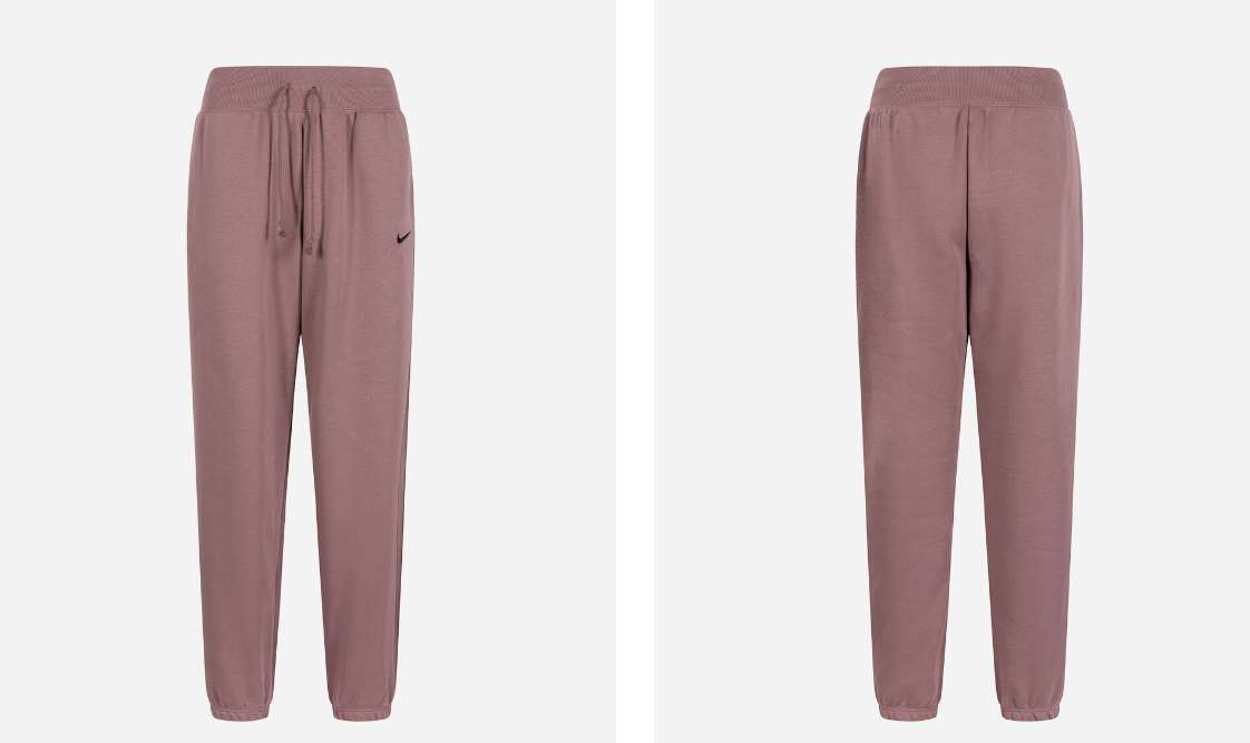 I pantaloni Nike hanno un fit oversize, con un fleece spazzolato ultraconfortevole. La vita è alta, mentre la vestibilità è ampia sul fianco e sulla coscia, alle caviglie hanno un bordo elasticizzato mentre la fascia elastica in vita fino all’ombelico è dotata di una coulisse regolabile.